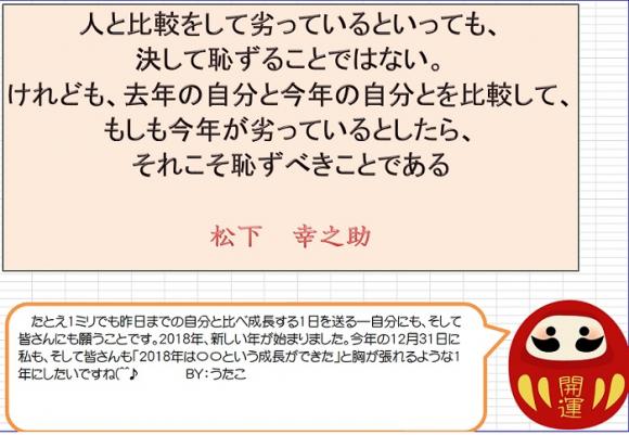 “経営の神様”と言われる松下幸之助さんの一言を選びました。数々の名言を残されている松下氏ですが、年頭にあたり、塾に通う生徒一人一人がこれからの1年でさらなる成長をしてもらいたいと思いこの言葉を選びました。