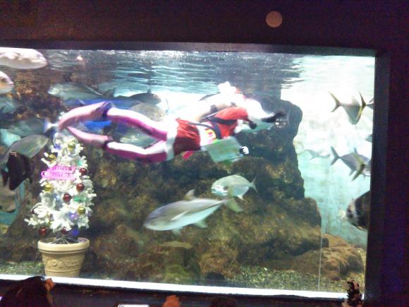 目的の『寺泊水族館』は、こじんまりとしたところでしたが、珍しい魚がいたり、サンタの格好をしたダイバーさんが餌付けショーをしたりして、子どもも大人も大満足でした。