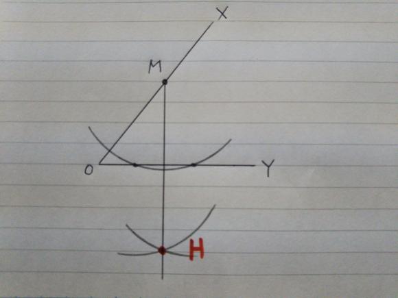 また、「点Mから辺OYにおろした垂線MHを作図せよ」という問題も ↓ こんなところに点Hをとるのです。