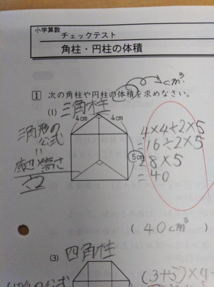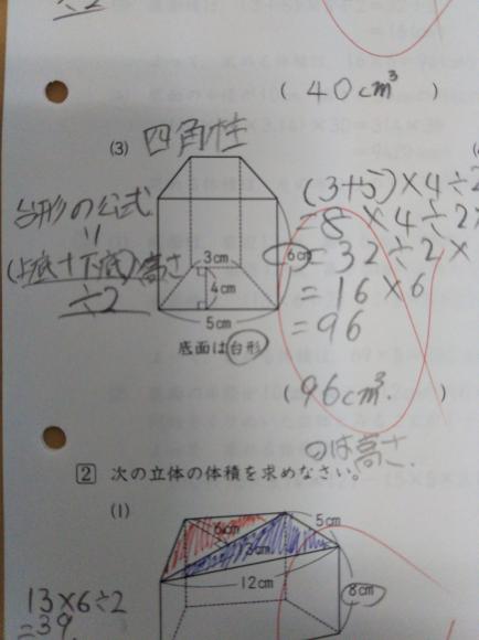 その子は、三角形や台形の面積を求めるときに、÷2 を忘れがちでしたので、このようにかいておけば、÷2 を忘れることはありません。(結果、テストは満点でした!)