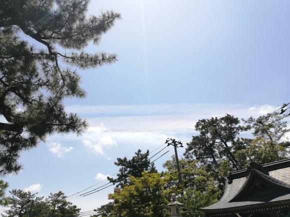 以前のブログでも書かせていただいたことがあるのですが、我が家では毎月月初めに氏神様の白山神社と教室の近くの鳥屋野神社へお参りに行くのが習慣となっています。今月も1日に二人でお参りに行って来たのですが、お参りを終え門をくぐった時、空を見上げると「彩雲」が!!