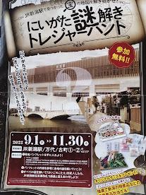 以前、新潟駅に行った際にたまたま見つけてもらってきた「謎解きマップ」。新潟駅・万代・古町各エリアを街歩きし、各チェックポイントで謎解きをし、キーワードをGET!全てのキーワードから導き出された暗号を解き、お宝GETのワードを解く!というものです。全部でチェックポイントは20か所。新潟駅や万代エリアは、チェックポイントが密集しているのでそれほど時間はかからなかったのですが、古町はエリアが2か所に分かれている上に、結構あちこち散らばっているため、中々骨の折れる街歩きとなりました。