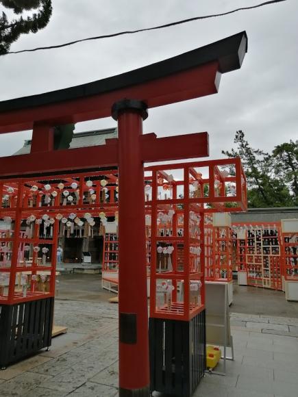 午前中はひどい土砂降りでしたが、神社に行く頃には雨もあがり、無事に「茅の輪くぐり」もできました。「風鈴祭り」もされていたので、色とりどりの風鈴が涼やかな音を鳴らしていました。様々な形の風鈴がとてもきれいなので、見に行かれると良いですよ!