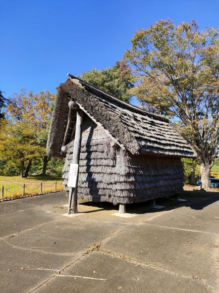 ここでの発掘調査で発見された縄文時代の住居が復元されているのですが、縄文時代には珍しく、住居が『高床式の掘立柱建物(ほったてばしらたてもの)』になっているのです。