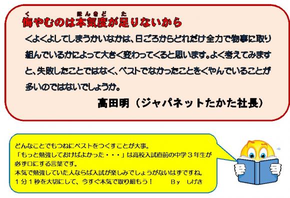 子どもたちに向けたメッセージなのですが、自分自身もこの言葉の通りにがんばろうと思います。