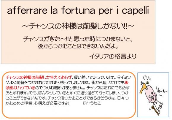 この言葉は私が学生の頃、よく母に言われた言葉です。(チャンスの神様の髪型には諸説あるようですが・・・)