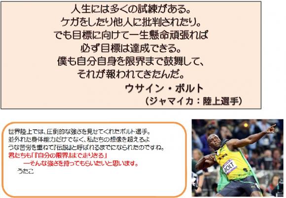 さて、新しい月が始まりましたので恒例の『今月の一言』です。今月は、記憶にも新しい世界陸上の出場選手の一言です。