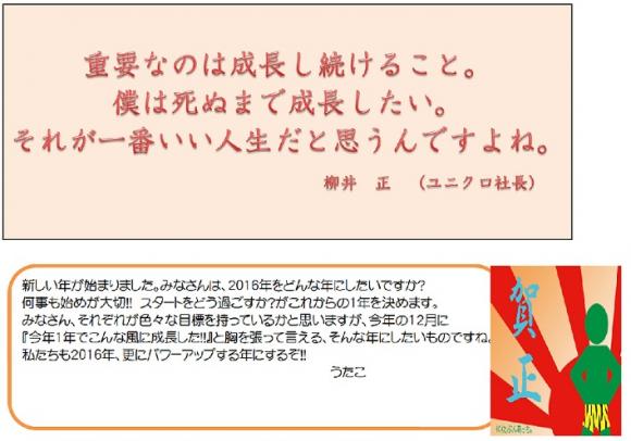 今月は私も年末年始のバーゲンでお世話になった「ユニクロ」の柳井正氏の一言です。柳井氏には数々の名言がありますが、その中でも私が一番好きな言葉を選びました。